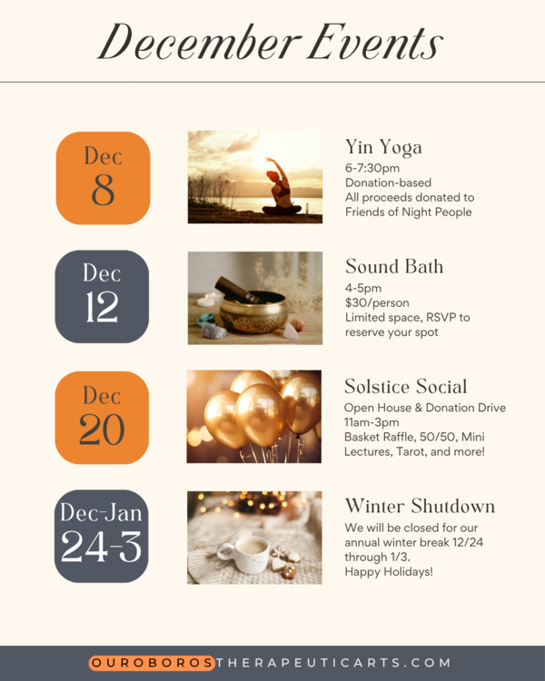 If you’ve never experienced a magickal sound journey before, you won’t want to miss this. Yoga mats, blankets, pillows, bolsters, and eye pillows are available for use. Space is very limited due to the size of our classroom, so call us today to reserve your spot!